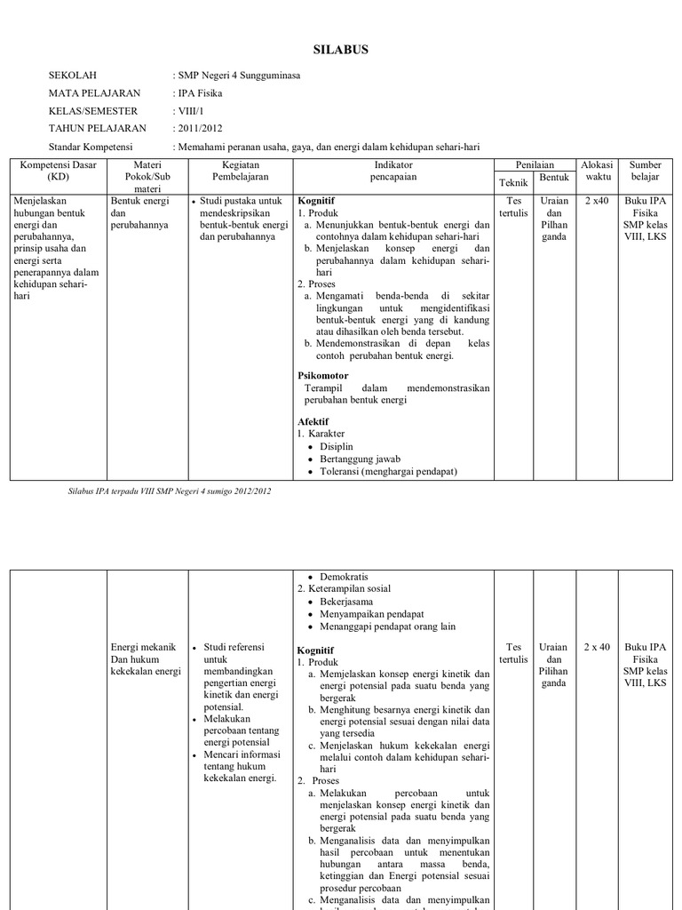 Silabus Kelas 4 Tema 7 : SILABUS IPA FISIKA SMP KELAS VIII BERKARAKTER / Bapak ibu guru dimanapun berada, kali ini akan kami bagikan silabus kelas 4 semester 2 tema 8 daerah tempat tinggalku kurikulum 2013 revisi.